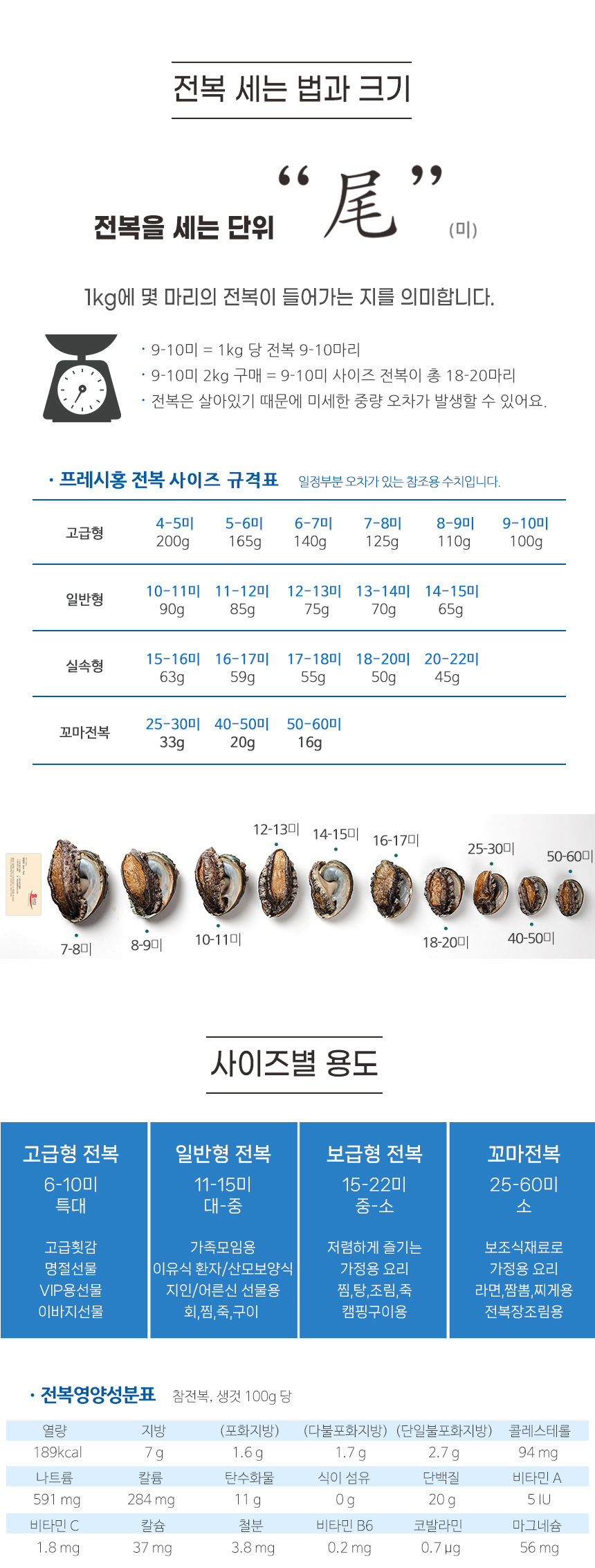 선별된 A급 완도활전복