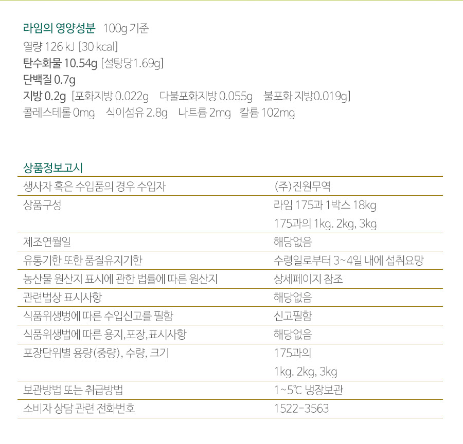 프리미엄급 라임 175과, 생라임 1-4kg, 수입과일 직판
